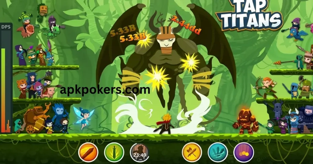 Tap Titans 2 is an awesome idle clicker RPG where you get to fight titans unlock heroes and upgrade skills to progress faster The game has smooth gameplay pretty graphics and rewarding features including offline play and events. You can join clans fight bosses and enjoy a strategic tapping experience on your Android device with frequent updates and features added daily.
